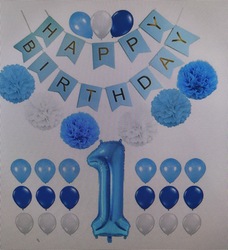 Blauw Gelukkige Verjaardag Papier Ballon Slingers Party Decoraties Voor Een Jaar